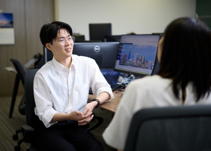 入社して現場配属後、徐々にですがシステムの仕組みづくりに携われることは、自分にとって大きな挑戦であり、貴重な経験になると考えました。実際に、3 年目の先輩方はプログラムを書くことにとどまらず、要件定義や設計といったプロジェクトの初期段階から活躍しており、エンジニアとして広い視野を身につけています。その姿を間近で見て、責任とやりがいを実感できる職場だと強く感じました。さらに、当初は「出社してデスクワーク」という先入観がありましたが、リモートワークで柔軟に働く社員もいて、自分らしい働き方を実現できる点にも魅力を感じています。